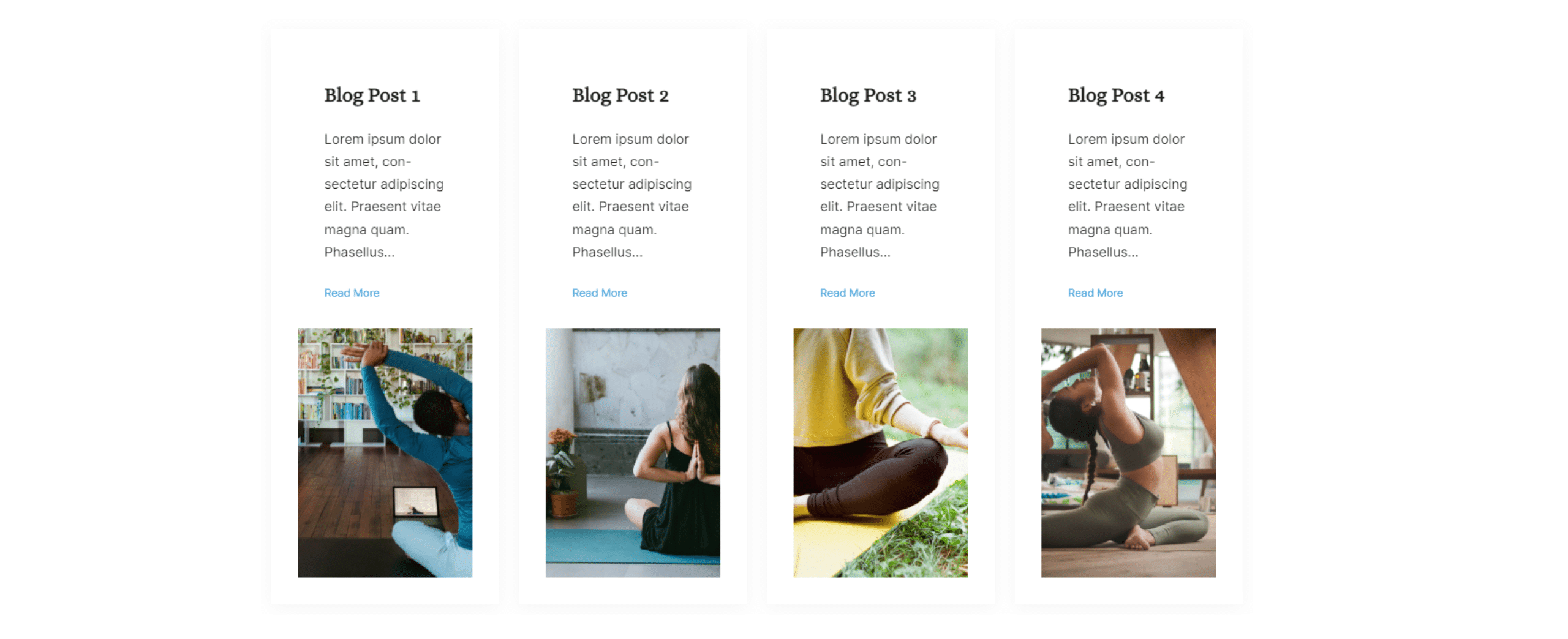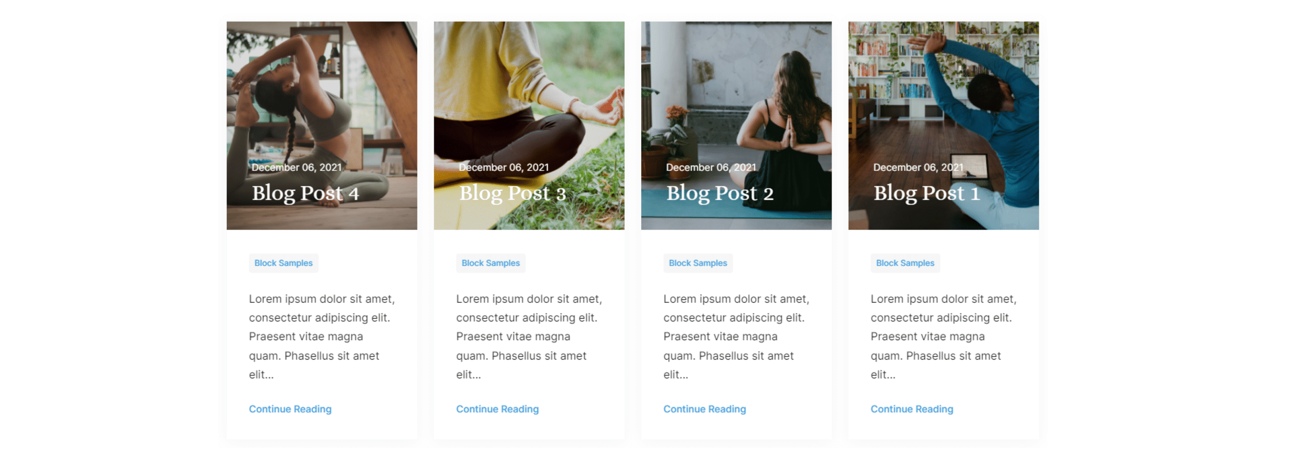 Blog post block with a vertical card 2 layout and meta & category toggled off