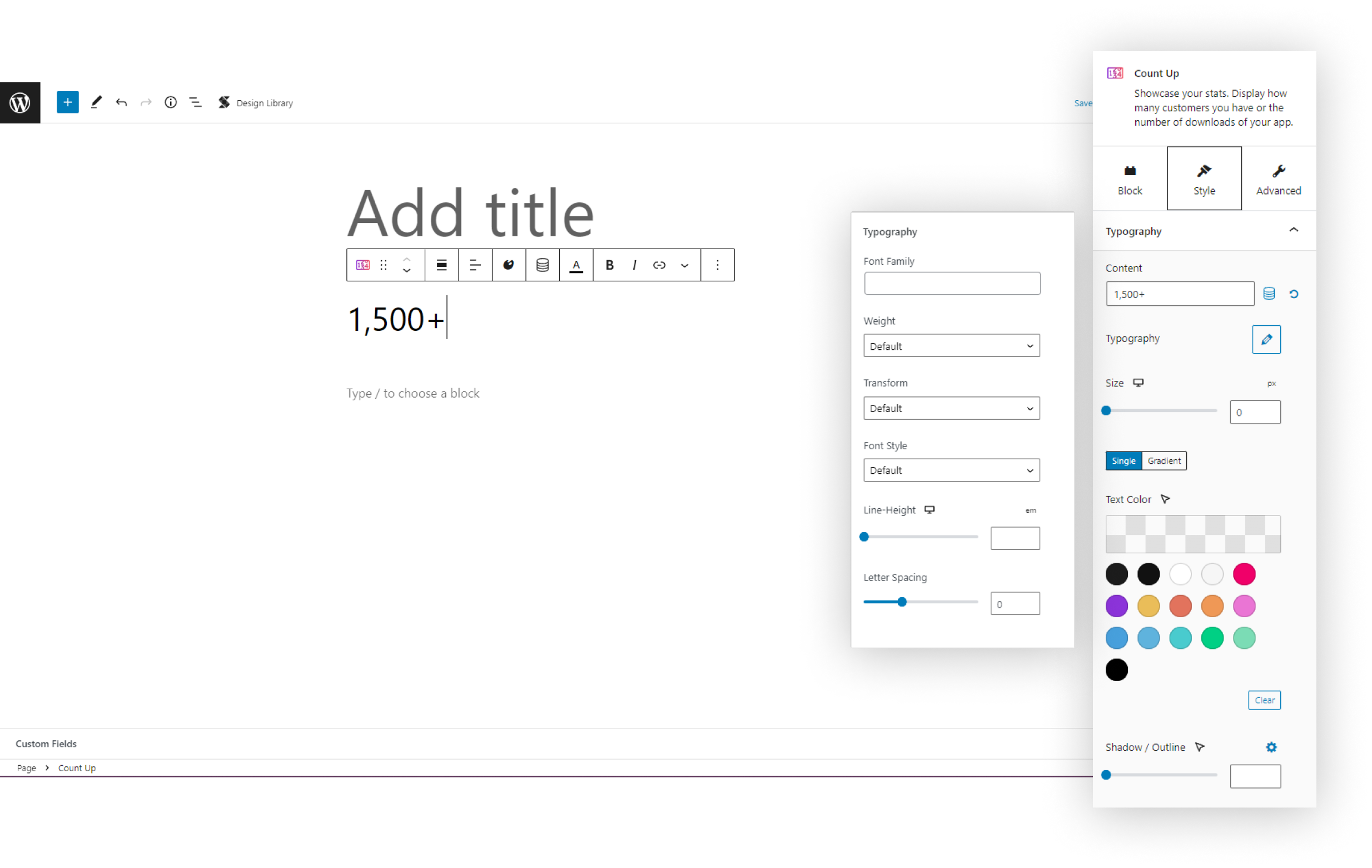- New: Added duration option for the Count Up block #2355