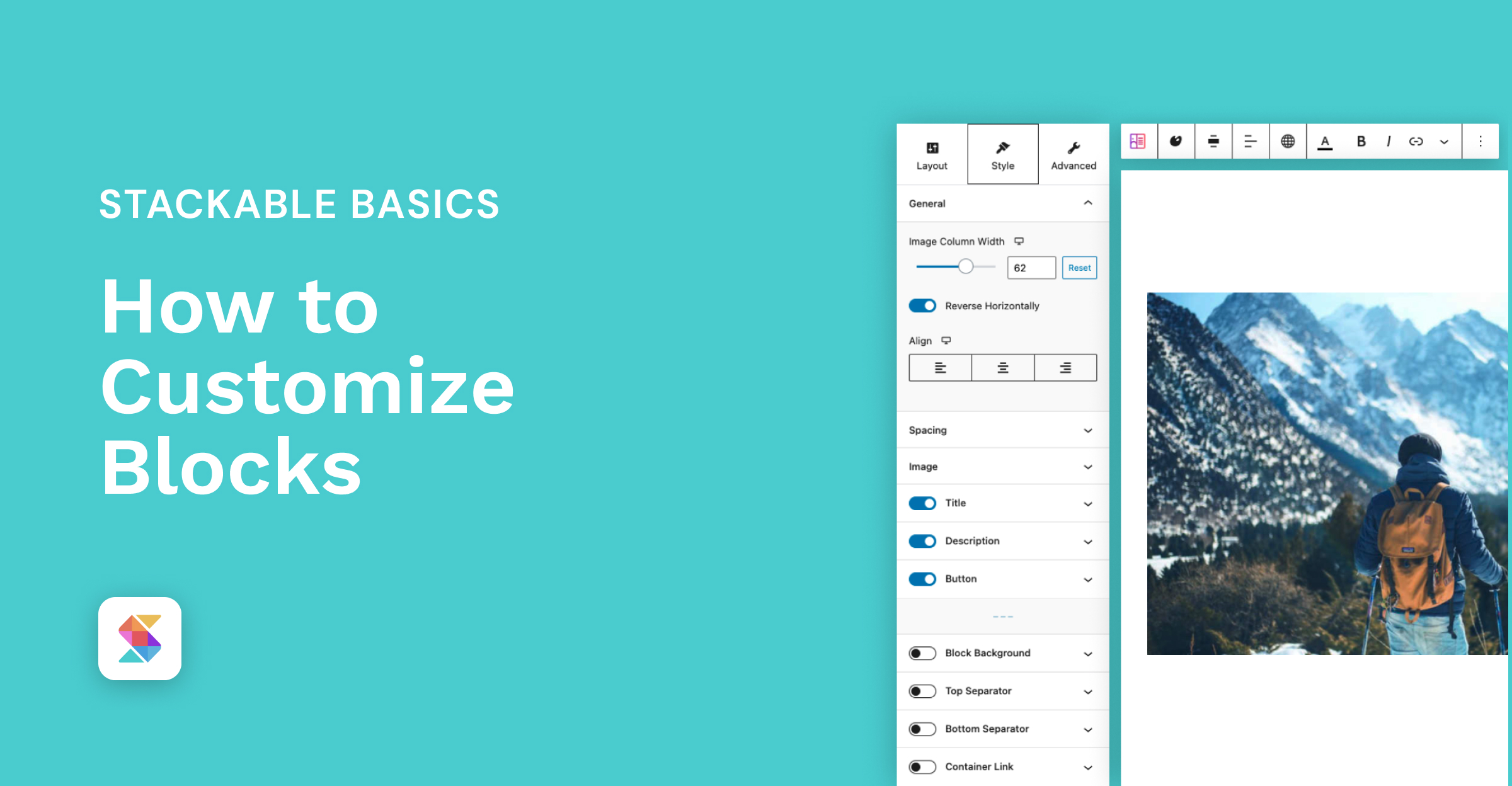 This video is an in-depth tutorial on how to customize Stackable blocks. You will have a deeper understanding of all the customizations and settings that are possible with Stackable.