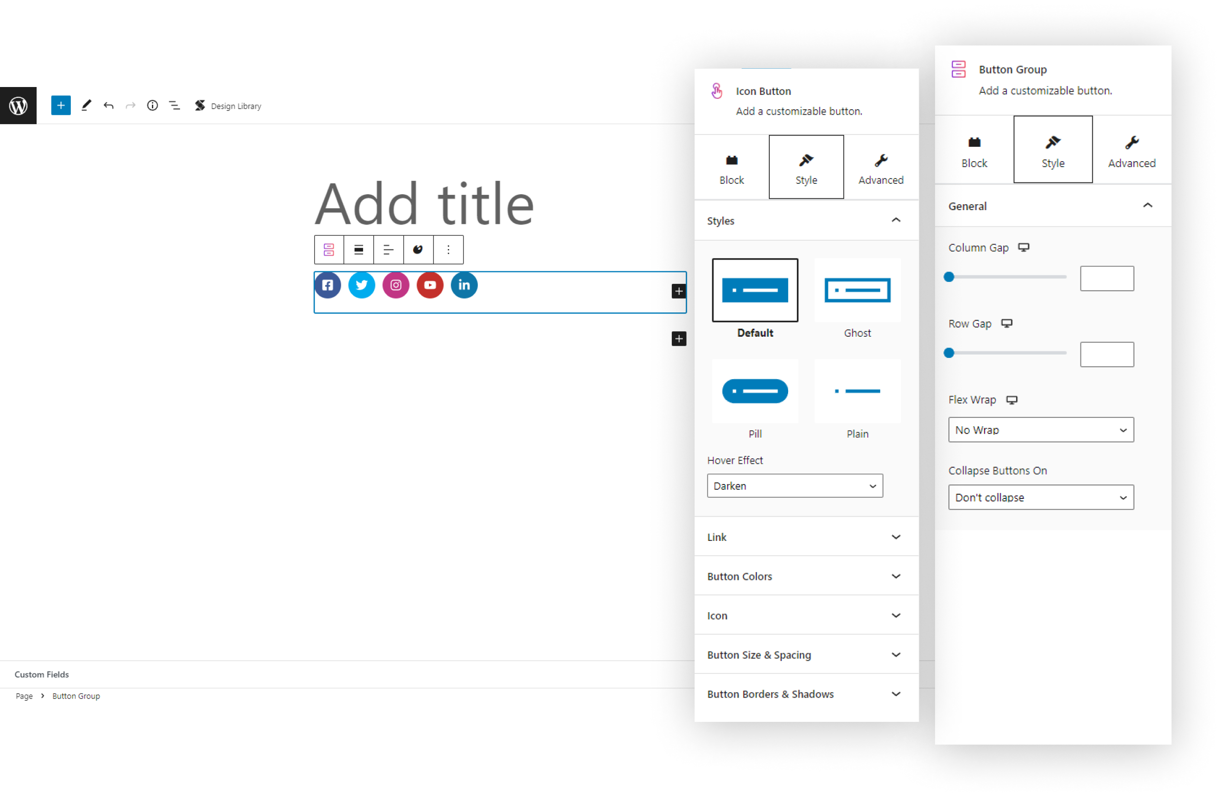 The Social Buttons Block for WordPress allows you to add social media buttons to your website and redirect visitors to your respective social media profiles. This is great for increasing exposure to your other channels.